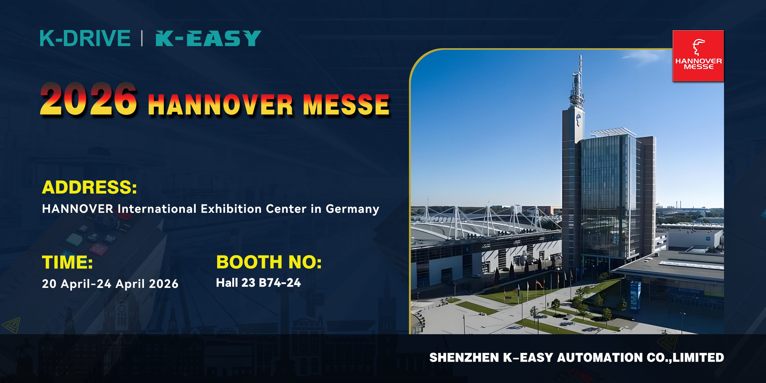 SHENZHEN K-EASY AUTOMATION ELECTRICAL CO., LIMITED will participate in HANNOVER MESSE 2026, one of the world’s leading industrial trade fairs, held from April 20 to 24, 2026 at the Hannover Exhibition Center, Germany.